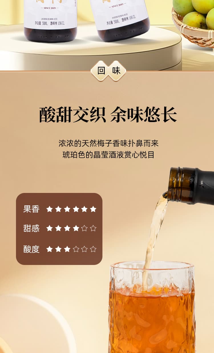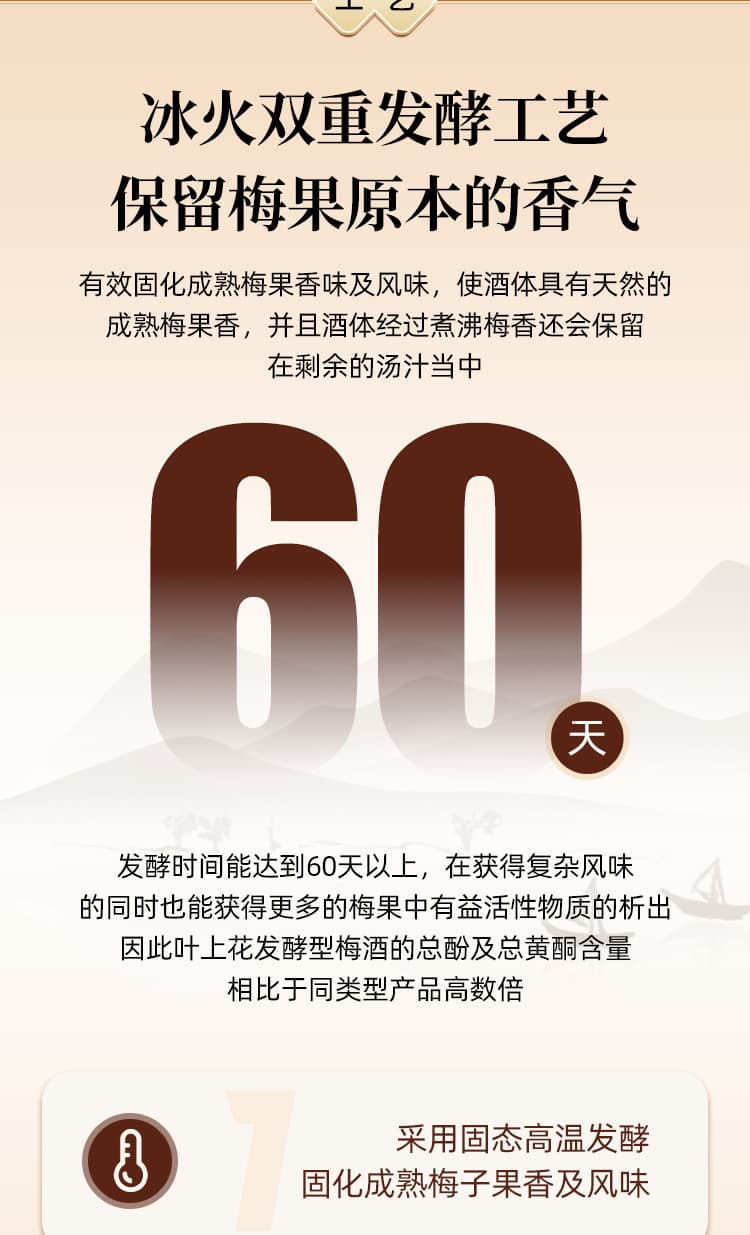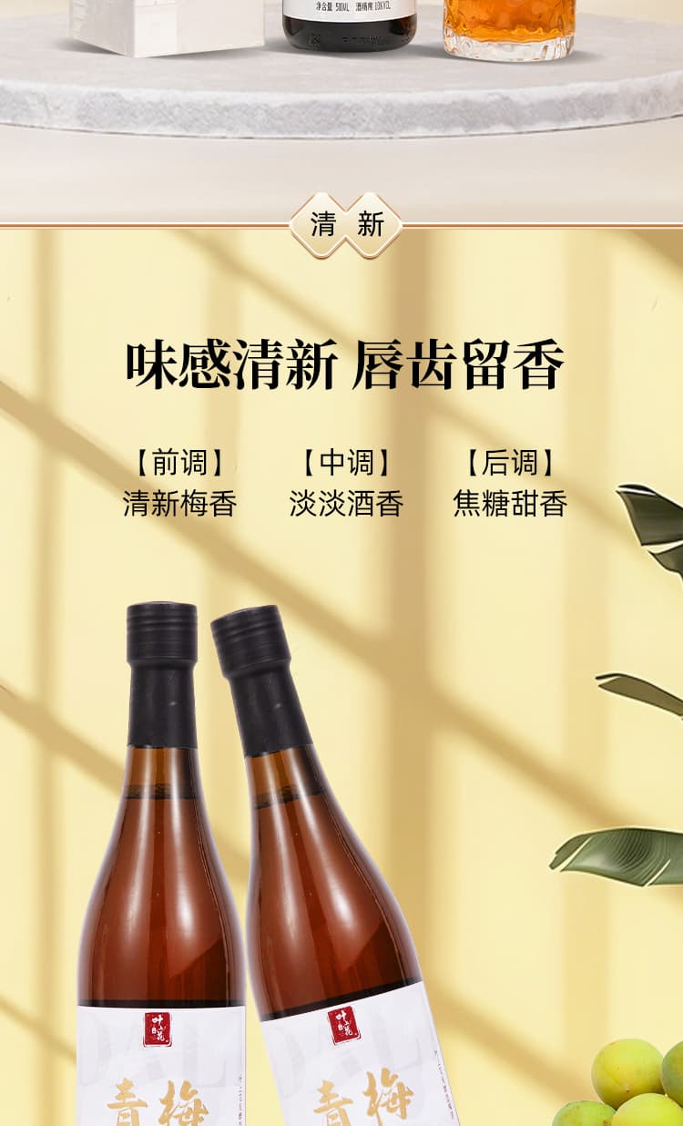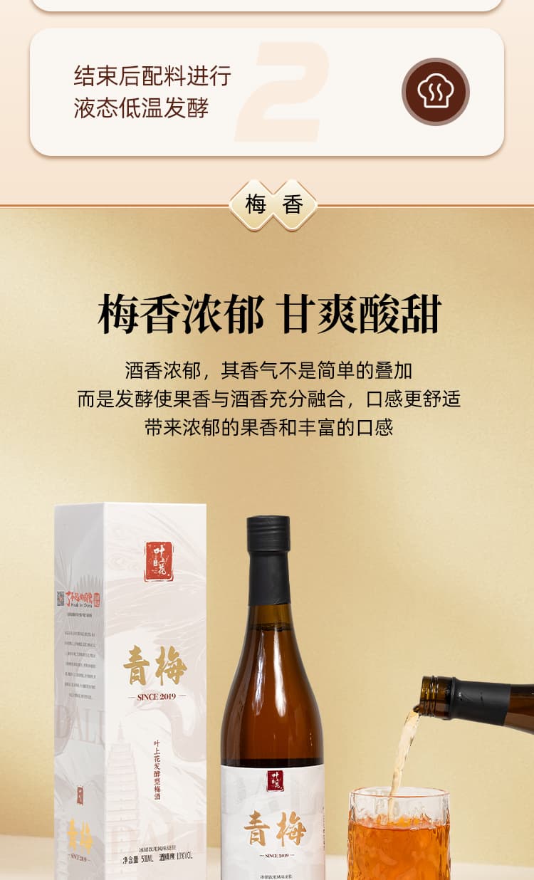 综上所述,叶上花梅酒以其独特的原料产地、酿造用水、酿造工艺和配料优势,打造出了风味独特、品质优良的青梅酒。