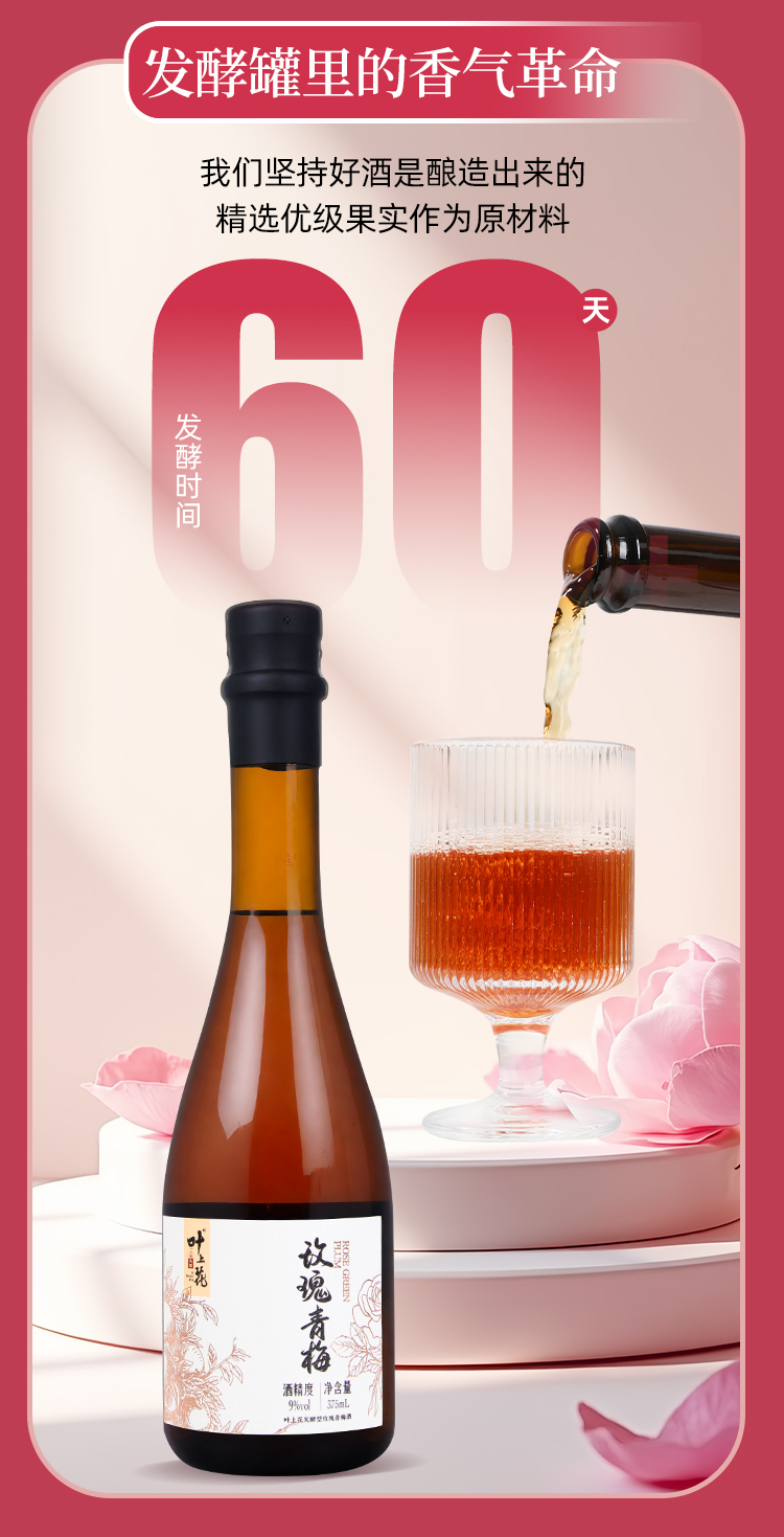 综上所述,叶上花梅酒以其独特的原料产地、酿造用水、酿造工艺和配料优势,打造出了风味独特、品质优良的青梅酒。